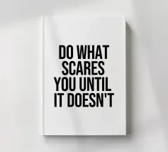 "Der mehrzeilige Satz INSPIRED BY THE FEAR OF BEING AVERAGE!" in einer fetten schwarzen serifenlosen Schrift auf weißem Hintergrund vermittelt eine Botschaft des Ehrgeizes und des Strebens nach Überlegenheit,