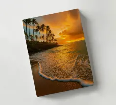 Lassen Sie die Meeresbrise herein mit diesem bezaubernden Blick auf den palmengesäumten Sandstrand von Waikiki Beach. Dieses leuchtende Design fängt den perfekten Moment ein, in dem sich der goldene Himmel im ruhigen Ozean spiegelt. Eine Einladung, dem Alltag zu entfliehen, zu faulenzen und tropisches Flair zu genießen. Ideal, um eine entspannende Sommeratmosphäre nachzuempfinden, in der jeder Blick an Urlaub und die Gelassenheit eines endlosen Horizonts erinnert.