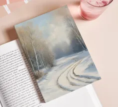 Ein bezauberndes und heiteres Ölgemälde fängt die stille Schönheit eines in sanften Nebel gehüllten Waldes ein. Hoch aufragende, schlanke Birken mit ihrer charakteristischen weißen Rinde dominieren den Vordergrund, ihre Formen sind sehr detailliert wiedergegeben. Ein weiches, gedämpftes Licht dringt durch den Dunst und beleuchtet einen gewundenen Pfad, der den Betrachter einlädt, tiefer in die ruhige Landschaft einzutauchen. Der Boden ist mit einem Wandteppich aus goldenen Gräsern und zarten Wildblumen bedeckt, die der kühlen, ätherischen Atmosphäre Struktur und Wärme verleihen. Dieses Werk erweckt ein Gefühl von Frieden, Einsamkeit und dem zeitlosen Geheimnis der Natur.