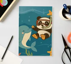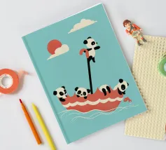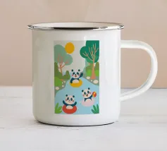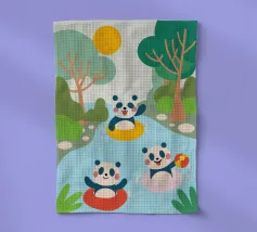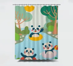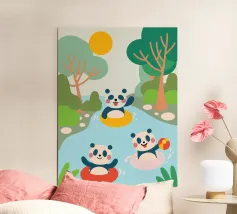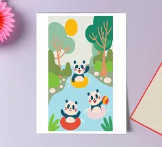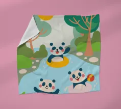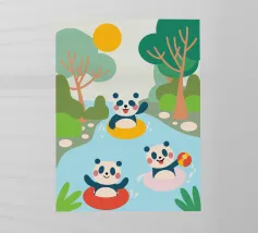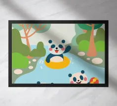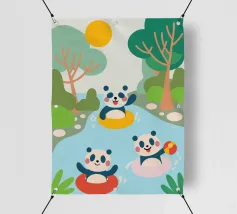 Dieses bezaubernde Design zeigt drei Pandas beim Spielen und schafft eine lustige und familienfreundliche Atmosphäre.