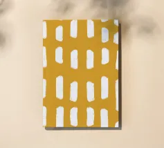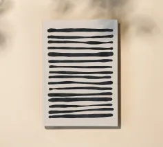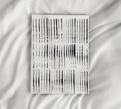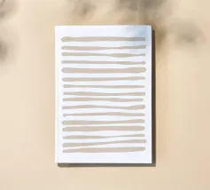 Ein abstraktes Design mit mehreren Reihen gleichmäßig verteilter, hellbrauner vertikaler Linien vor weißem Hintergrund, die ein visuell konsistentes und einheitliches Muster bilden, das sich ideal für minimalistische Kunst- und Designprojekte eignet.