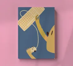 Eine stilisierte Illustration eines Laptops, der von Marionettenfäden gesteuert wird