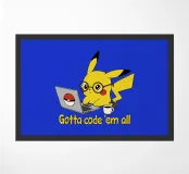 Ein liebenswert nerdiger Pikachu, der eine Brille trägt und sich auf seinen Laptop konzentriert, mit der verspielten Phrase "Gotta code 'em all". Dieses Kunstwerk verbindet das Pokémon-Universum mit der Welt der Programmierung und ist ein perfektes Wortspiel für Entwickler und Fans der Popkultur. Ideal für Programmierer, Gamer und Sammler, die gerne Humor, Nostalgie und Technologie in ihrem Stil kombinieren.
