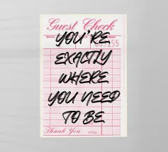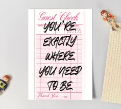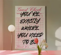 Finden Sie Ihren perfekten Platz mit unserem "Exactly Where You Need To Be" Guest Check Poster. Dieses einzigartige Kunstwerk ist eine Neuinterpretation der klassischen rosafarbenen Gästekarte eines Diners und verwandelt sie in eine kraftvolle und beruhigende Botschaft in fetter, eindrucksvoller Schrift. Es ist ein inspirierendes und erdendes Kunstwerk, das perfekt geeignet ist, um Ihrer Küche, Ihrem Büro oder Ihrem persönlichen Raum einen Hauch von Motivation und Zuversicht zu verleihen. Unser digitales Kunstwerk wird mit einer Auflösung von 7000x5000 Pixeln und 300 dpi erstellt, was eine außergewöhnliche Klarheit und ein wunderschönes, hochwertiges Finish für Ihr Premium-Poster gewährleistet und es zu einem wirklich einzigartigen und bedeutungsvollen Dekorationsartikel macht.