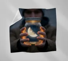 Erleben Sie die Magie des Reisens und des Nachthimmels mit diesem stimmungsvollen Kunstwerk, das eine Hand zeigt, die sanft ein Flugzeugfenster mit Blick auf leuchtende Wüstendünen berührt. Eine Mondsichel leuchtet vor einem tiefblauen Himmel voller Sterne und schafft eine heitere Mischung aus Fernweh und Staunen. Der warme, goldene Sand steht in schönem Kontrast zu den kühlen Nachttönen und fängt das Gefühl von Einsamkeit, Reflexion und Träumen über der Welt ein. Perfekt für Reiseliebhaber, Minimalisten und Fans von filmischen, verträumten Fensterbildern.