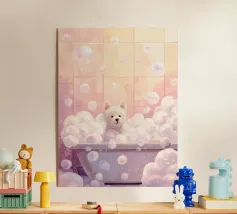 Oil painting of a cute ghost in hot tub with bubbles and flowers