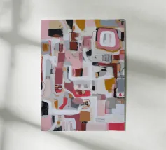 Eine kühne Erforschung der Struktur durch lebendige Abstraktion. Diese dynamische Komposition, die von karminroten, orangefarbenen und korallenroten Farbschichten dominiert wird, verbindet geometrische Formen mit ausdrucksstarken Pinselstrichen und erzeugt so eine rhythmische Energie, die architektonisch und doch gefühlsbetont wirkt. Das Zusammenspiel von scharfen Winkeln und weichen Farbverläufen evoziert Bewegung, Wärme und Vitalität - ein beeindruckendes Herzstück für jeden modernen Raum.