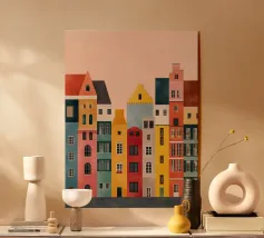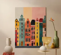 This image captures the architecture of Bruges with bold colors and geometric precision. A perfect addition to any modern art collection. Ideal for lovers of travel, architecture, and colorful design.