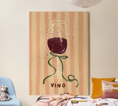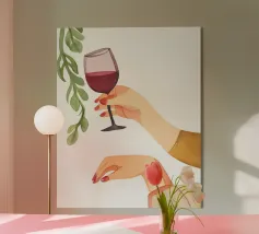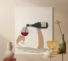 "A Sip of Reflection" ist eine subtile Hommage an die Einfachheit und Schönheit der einfachen Dinge. Beruhigende Töne und moderne Linien vereinen sich zu einem Kunstwerk, das sowohl beruhigend als auch anspruchsvoll ist. Dieses Design ist ideal für alle, die ein Gleichgewicht zwischen einem minimalistischen Stil und der Vorliebe für guten Wein suchen. Perfekt für einen Entspannungsraum oder eine Küche, lädt es dazu ein, die Zeit zu entschleunigen und Momente der Ruhe zu genießen, während es den Raum mit einer weichen und harmonischen roten Farbpalette aufwertet. Ein Must-Have für elegante Weinliebhaber.