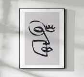 Dieses minimalistische, abstrakte Gesicht setzt auf klare Linien und kreative Einfachheit, um einen modernen und kunstvollen Touch in dein Zuhause zu bringen. Die monochrome Farbpalette und das skizzenhafte Design fügen sich nahtlos in moderne, minimalistische Wohnkonzepte ein und schaffen eine subtile, aber beeindruckende Atmosphäre. Egal ob als Wandbild, Tasse oder Kissen – dieses Design verleiht jedem Produkt eine künstlerische Note. Ideal für alle, die schlichte Eleganz und kreative Ausdruckskraft lieben.