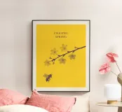 Dieses Kunstwerk von Artezza fängt den zarten Moment zwischen einer Biene und blühenden Kirschzweigen ein. Das minimalistische Design in warmem Gelb und kontrastierendem Violett vereint Naturpoesie mit moderner Ästhetik. Die feine Textur, klare Komposition und elegante Typografie machen „Chasing Spring“ zu einem ausdrucksstarken Wandschmuck – ideal für ruhige, stilvolle Räume.