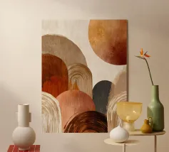 Warm beige, brown, and terracotta tones layered with soft painterly texture. A timeless piece for lovers of neutral modern decor.