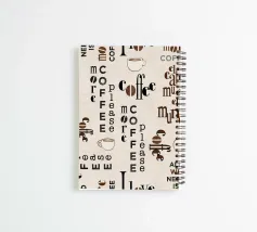 Verschiedene Kaffee Zitate Kunst Muster in Brauntönen auf einem Leinen strukturierten Creme Hintergrund.