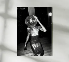 Ein Partymädchen aus dem 19. Jahrhundert, bereit zum Raven. 70er Jahre Disco-Kugel funky Vibes. Geänderte klassische Barockmalerei - surreale Collagekunst von MsGonzalez