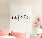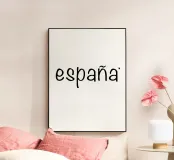 Ich würde gerne nach España reisen. Ich liebe es, um die Welt zu reisen. Ich liebe es, Städte, Berge und die Wüste zu besuchen. Typografie in Schwarz und (transparentem) Weiß. Sie können die Hintergrundfarbe ändern. Minimalistische Typografie Poster von einem Reisenden.