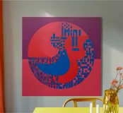 Ein gewagtes abstraktes Muster mit einem Hauch von dynamischer Energie, das Bewegung und Fließen symbolisiert. Kräftige Farben, um Themen wie Wasser, Leben und Bewegung anzusprechen. Eine innovative Verschmelzung von Tradition und Moderne für zeitgemäße und minimalistische Innenräume. Eine einzigartige visuelle Sprache, die kulturelle Grenzen überschreitet.