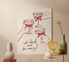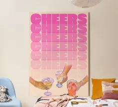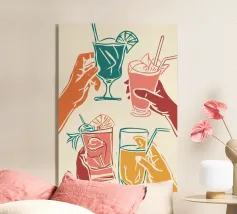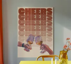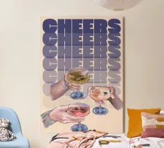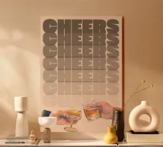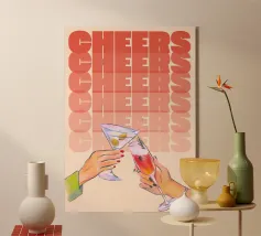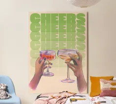 Ein fröhliches und skurriles Design, das die Freude am gemütlichen Beisammensein mit Freunden zelebriert, mit verspielten Elementen wie klirrenden Gläsern und bunten Akzenten. Mit einer lebhaften, fröhlichen Farbpalette strahlt dieses Kunstwerk eine lustige, unbeschwerte Energie aus - perfekt für alle, die gerne in Gesellschaft sind und die kleinen Momente des Lebens genießen. Ideal für Bars, Küchen, Lounges zu Hause oder als Geschenk für alle, die eine gute Zeit in toller Gesellschaft genießen!