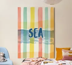 Ein zartes Aquarellmotiv von Surfbrettern in Apricot-, Blau- und Gelbtönen. Das helle, freundliche Design vermittelt Strandfeeling und Leichtigkeit.