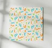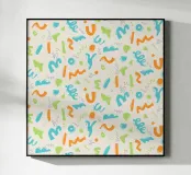Dieses Design präsentiert eine abstrakte Komposition aus fließenden Linien und Formen in kräftigen Farbtönen. Die elemente sind harmonische angeordnet und verleihen dem Muster eine dynamische und verspielte Ausstrahlung.