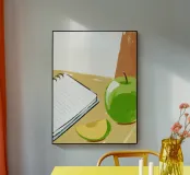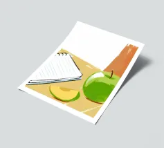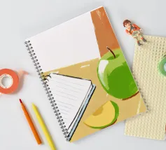 Entdecken Sie die klassische Kombination von "Äpfeln und Büchern" als Symbol für Wissen, Inspiration und Lernen.