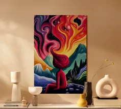 Ein intensiver Moment der Befreiung oder des Wahnsinns – dieses expressive Kunstwerk zeigt ein Gesicht, das vor Energie, Emotion und Chaos explodiert. Die dynamischen, leuchtenden Farbstriche, die aus dem Kopf herausbrechen, symbolisieren kreative Explosion, Schmerz oder Erleuchtung. Der dramatische Ausdruck und der kühne Malstil fesseln den Blick des Betrachters und laden zur Interpretation ein. Ein eindrucksvolles Stück für Liebhaber moderner, abstrakter Kunst.