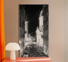 Die Wolken, die sich über der Stadt Barcelona ausbreiten, sind dynamisch. Wenn ich vom Dach meiner Wohnung aus schaue, kann ich das glitzernde Meer jenseits der Stadt auf der rechten Seite sehen. Vor mir entfaltet sich eine andere Welt, die ich von der Straße aus nicht sehen kann. Dies ist eine Zeichnung, die ich live gemacht habe.
