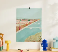 Wenn Henry Rivers nicht gerade illustriert oder Buchcover gestaltet, genießt er das Landleben in einer Kleinstadt nahe Bordeaux. Die Inspiration für seine Arbeiten findet er jedoch an Orten, die von der französischen Provinz weit entfernt liegen. Ob Tokio oder Rio de Janeiro: Während Rivers sowohl physisch als auch durch die Weiten des Internets an fremde Orte reist, sammelt er visuelle Erinnerungen und urbane Eindrücke. Auf der Grundlage seiner Funde entwirft er zeitgenössische Poster, die in zarten Farben selbst schlimmstes Fernweh zu besänftigen wissen. Dass er einen Abschluss in Architektur mitbringt, lässt sich an der Verbindung von großen Landschaftsimpressionen und feinen Details, die seine Prints zum Leben erwecken, ablesen.