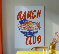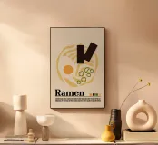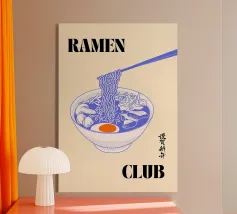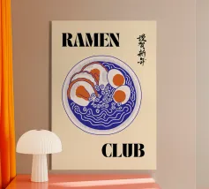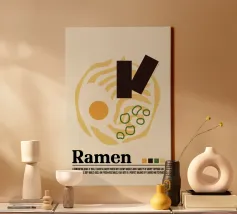 Dieses Kunstwerk verleiht jedem Raum einen verspielten und doch klassischen Touch. Es eignet sich perfekt für Küchen, Ramen-Läden oder Nudelliebhaber und ist eine stilvolle Möglichkeit, Vintage-Flair und japanische Wärme in Ihre Einrichtung zu bringen! Zelebrieren Sie den beruhigenden Charme von Ramen mit diesem Poster im Retro-Stil! Mit einem kühnen, minimalistischen Design einer Schüssel Ramen