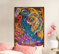 Un motif abstrait audacieux avec une touche d'énergie dynamique qui symbolise le mouvement et la fluidité. Des couleurs vives pour évoquer des thèmes tels que l’eau, la vie, et le mouvement. Une fusion innovante entre tradition et modernité pour des intérieurs contemporains et minimalistes. un langage visuel unique qui transcende les frontières culturelles.