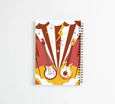 The detailed and expressive illustrations of the two guitars are beautifully captured in a stunning artistic touch.