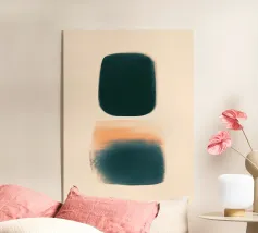 This minimalist abstract artwork combines soft, flowing brushstrokes with balanced blocks of color to create a calm and modern composition. Warm shades of amber, coral, and peach gently fade into a deep blue base, evoking a sense of quiet movement and stability. The subtle textures and organic shapes add depth while maintaining a clean, contemporary feel. Ideal wall art for Scandinavian, modern, or minimalist interiors seeking warmth, balance, and understated elegance.