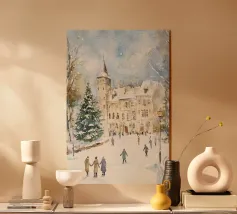 Dieses Kunstwerk fängt einen ruhigen Winterplatz ein, der sich in ein poetisches Feld menschlicher Präsenz verwandelt. Aus einer entfernten, erhöhten Perspektive treiben einsame Figuren und kleine Gruppen über den schneebedeckten Boden und umkreisen ein sanft beleuchtetes Immergrün in der Mitte. Dicke, ausdrucksstarke Pinselstrukturen und eine zurückhaltende Farbpalette evozieren Stille, kalte Luft und gedämpfte Klänge. In der Komposition halten sich Abstraktion und Realismus die Waage und verwandeln alltägliche Bewegungen in einen kontemplativen Rhythmus. Sie reflektiert über urbane Einsamkeit, jahreszeitliche Rituale und die zerbrechliche Wärme, die sich kurzzeitig in gemeinsam genutzten öffentlichen Räumen einstellt.