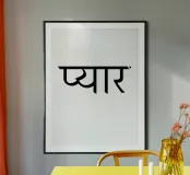 प्यार, Liebe auf Hindi. Typografie in Schwarz und (transparentem) Weiß. Sie können die Hintergrundfarbe ändern. Minimalistische Typografie Poster.