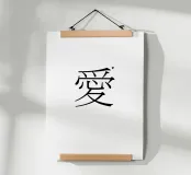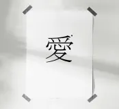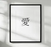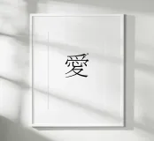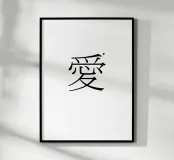 愛 wie du (Liebe) auf Japanisch. Typografie in Schwarz und (transparentem) Weiß. Sie können die Hintergrundfarbe ändern. Minimalistisches Typografie-Poster.