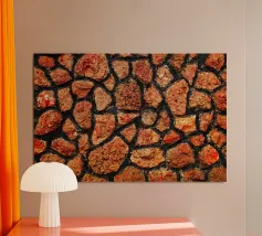 Eine abstrakte Neuinterpretation eines Sonnenaufgangshimmels, der in kreisförmige Zickzack-Muster in warmen Rot-, Orange- und Grautönen verwandelt wurde. Die dynamischen Farbtöne vermitteln ein Gefühl von Bewegung und Energie und eignen sich perfekt als kühner Wandkunstdruck für Wohnzimmer, Büros oder kreative Räume.