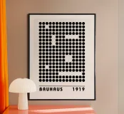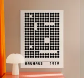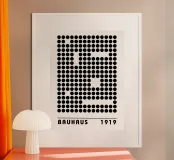 Dieses ikonische Bauhaus-Motiv von 1919 setzt auf klare Struktur und minimalistisches Punktedesign in Schwarz-Weiß. Hunderte gleichmäßige Kreise formen ein kunstvolles, modernes Raster, das die Essenz der Bauhaus-Ästhetik einfängt. Die reduzierte Optik passt perfekt in moderne, stilbewusste Wohnräume – ob als Poster, Tasse, Kissen oder Wanddeko. Ein echter Blickfang für Designliebhaber mit Sinn für Ordnung und Kontrast.