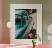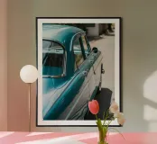 Blauer Oldtimer Poster