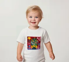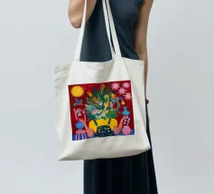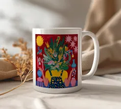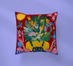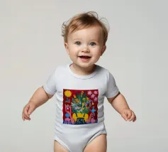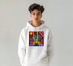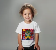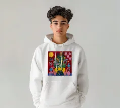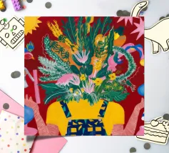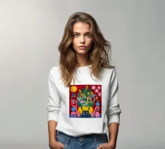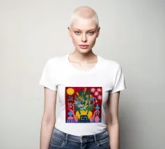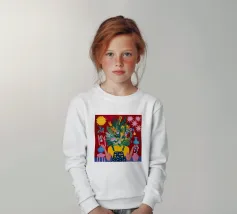 Ähnlich wie bei Lunar131 zeigt dieses Gemälde einen Kopf, der mit leuchtenden Blumen und Pflanzen gefüllt ist. Der Hintergrund ist rot mit Sternen und einer gelben Sonne.