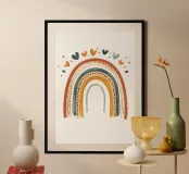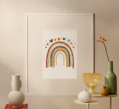 Ein handgezeichneter Regenbogen in sanften Erdtönen, geschmückt mit kleinen Herzchen – perfekt für warme, moderne Kinderzimmer oder als liebevolle Geschenkidee. Dieses Poster verbindet skandinavisches Design mit kindlicher Leichtigkeit. Ideal für alle, die mit wenig Farbe viel Gefühl ausdrücken möchten.
