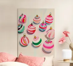 Verleihen Sie Ihrem Zuhause eine festliche Note mit unserem hochwertigen, gerahmten Druck "Weihnachtskugeln 2" von Cassia Beck Photography. Dieses langlebige Kunstwerk bringt die festliche Stimmung perfekt in Ihr Wohnzimmer, Schlafzimmer oder als Teil Ihrer Weihnachtstischdekoration. Ideal als Geschenk zur Weihnachtszeit!