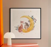 Verliebe dich in die zauberhafte Atmosphäre von „Honeymoon“! Dieser wunderschöne Holzrahmen Kunstdruck zeigt schlafende Tiere unter einem Mond und ist perfekt für jedes Kinderzimmer oder als süßes Geschenk. Ideal für Kunstliebhaber und Tierfreunde, bringt dieses Kunstwerk Wärme und Magie in dein Zuhause. Ob als Teil einer Galerie-Wand oder alleinstehend, der Druck ist ein Blickfang und sorgt für ein gemütliches Ambiente. Mit seiner sanften Farbpalette und liebevollen Details passt der Druck perfekt in jedes Zimmer. Der hochwertige Druck garantiert Langlebigkeit, sodass du lange Freude daran hast. Fühle die sanfte Verspieltheit und die träumerische Stimmung der Nacht – perfekt für Träumer und Romantiker! Erweitere deine Sammlung oder verschenke es als besondere Aufmerksamkeit.