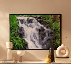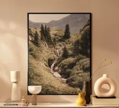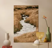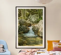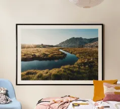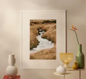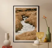 Hochwertiger Holzrahmen-Kunstdruck mit beruhigendem Flusslauf-Motiv aus Island. Perfekt als Wanddekoration für Wohnzimmer, Büro oder Schlafzimmer, bringt Naturverbundenheit und Ruhe in Ihre Räume. Gedruckt auf langlebigem, nachhaltigem Material nach EU-Standards.