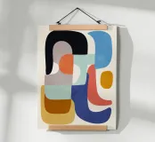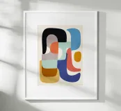 Dieser stilvolle Holzrahmen Kunstdruck "Formkomposition" von ThingDesign bringt modernes Flair in Ihr Zuhause. Das abstrakte Design mit sanften Farben ist ideal für Wohnräume und Büros und verleiht jedem Raum eine kreative Note.