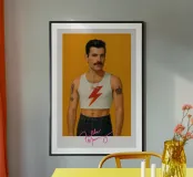 Freddie Mercury neu interpretiert: In diesem Porträt trifft legendäre Bühnenenergie auf modisches Statement – mit Crop-Top, Blitzsymbol und selbstbewusstem Blick. Tattoos, Typo und Signatur machen das Motiv zu einer kraftvollen Hommage an den Queen-Frontmann. Für Fans von Musikgeschichte, Pop-Art und ikonischem Stil. Perfekt als Poster oder Kunstdruck mit Kultcharakter.
