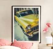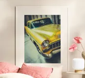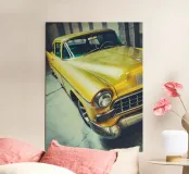 Klassischer Luxus, der in leuchtendem Gelb erstrahlt. Atemberaubend realistische Details, die die Schönheit und Eleganz klassischer Autos widerspiegeln. Perfekt für Auto- und Kunstliebhaber.