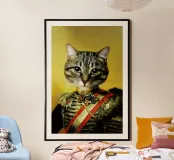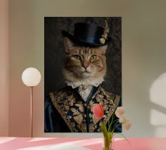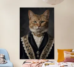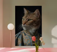 Von der Eule Paowla bis hin zur Bulldogge Greg verwandelt Tein Traniellos anthropomorphe Kunst Haustiere in Aristokraten vergangener Epochen. Manchmal tragen sie herrschaftliche Halskrausen, manchmal Kriegsmedaillen – die höfischen Katzen, Kakadus und Chihuahas, die glücklich sind, ihr Porträt für die Nachwelt verewigen zu lassen. Die Idee zu dem Projekt “L`Animorphe” entstand in Teins Atelier in Amsterdam, als er beschloss, seinen treuen Labradoodle Ventje (was auf Niederländisch "kleiner Kerl" bedeutet) zu porträtieren.