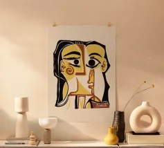 Der kubistische Kunstdruck "Kitchen Setup" mit Holzrahmen bringt moderne Kunst in Ihre Küche. Farbenfrohes Design im Picasso-Stil, ideal als skandinavische Wanddekoration oder Geschenk für Kunstliebhaber. Hergestellt mit hochwertigen Materialien, perfekt für stilvolle Küchenwände.