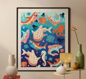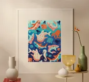 Immerse yourself in the serene beauty of the ocean with 'Ocean Wonders.' This vibrant print captures the captivating blues of the sea and the colorful world of underwater life.