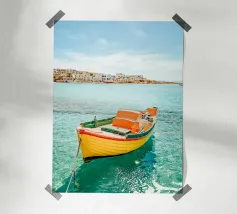 Transform your space with the tranquil beauty of this stunning poster featuring an idyllic fishing boat, gently floating on calm waters. The peaceful scene captures the essence of a simpler time, where the sun casts a golden glow on the water and the soft ripples create a sense of calm. Perfect for those who appreciate the charm of coastal life and the timeless allure of the sea. This artwork is ideal for bringing a touch of serenity and warmth to any room, evoking the gentle rhythms of life by the water.