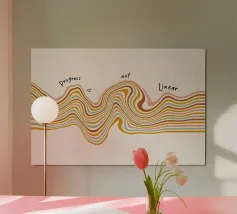An abstract wave composition symbolizing growth, setbacks, and momentum. Soft pastel colors flow organically, reflecting the reality that progress moves in curves, not straight lines. A calm yet powerful visual reminder to trust the process, embrace change, and keep moving forward at your own pace.
